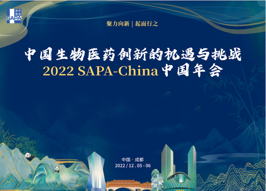 由美中医药开发协会中国分会(Sino-American Pharmaceutical Professionals Association ‒ China,SAPA-China)主办的“ 中国生物医药产业发展的机遇与挑战暨 2022SAPA-China 中国年会 ”将于 2022 年 12 月 05 日 -06 日在中国 · 成都隆重召开。